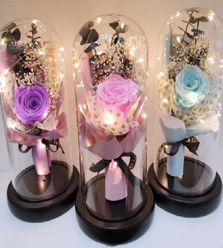 ramo de rosas preservadas para siempre en cúpula de cristal